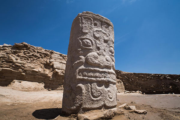 陕西神木石峁遗址是距今4000年前后东亚地区目前已发现规模最大的城址。2018年以来,考古工作者在皇城台大型台基上新发现七十余件精美石雕作品,为探讨中华文明起源和古代先民精神世界提供了宝贵实物资料。图为石峁遗址皇城台出土的石雕。中国文物报社供图