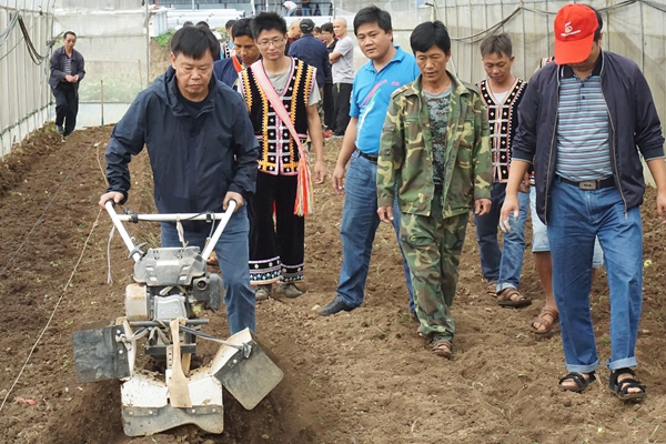 图为朱有勇院士示范小型农机具的使用。胡里城/摄