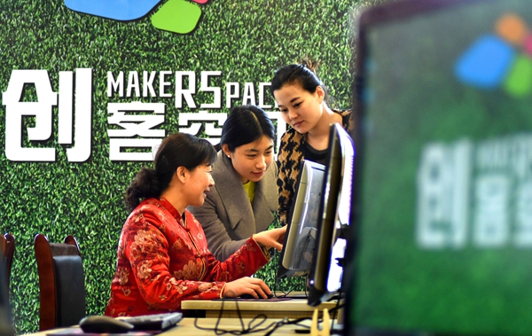 图为山东省沂源县历山街道西沙沟村的农家妇女在学习电商创业知识。新华社发 赵东山/摄