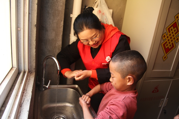 图为巾帼志愿者教凉山孩子健康文明生活方式。全国妇联供图