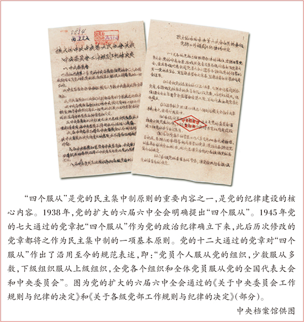 1942年9月中央政治局通过的《中共中央关于统一抗日根据地党的领导及调整各组织间关系的决定》要求:“在决定含有全国全党全军普遍性的新问题时,必须请示中央,不得标新立异,自作决定,危害全党领导的统一。”