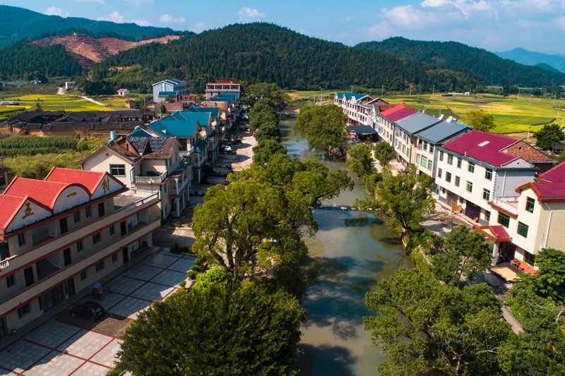 清澈溪流潺潺流淌,百年古树绿影婆娑,永安市小陶镇五一村生机盎然。