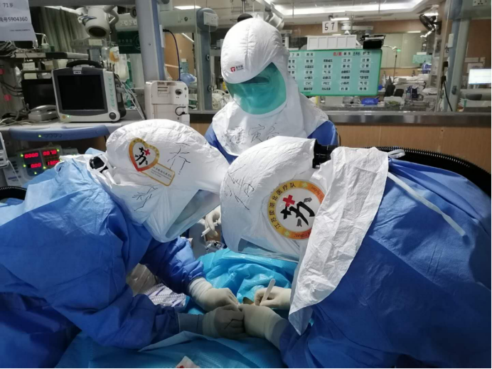 四川大学华西医院援鄂重症救治医疗队分3批次,共175人,整建制接管了武汉大学人民医院东院和武汉市红十字会医院多个重症病区。队员倪忠在没有正压头套的情况下用医用塑料袋套在防护头罩外,对患者实施插管,挽救了患者生命。队员王鹏冒着极大的风险提出用呼吸机对患者进行“肺复张”的大胆尝试,使患者转危为安。