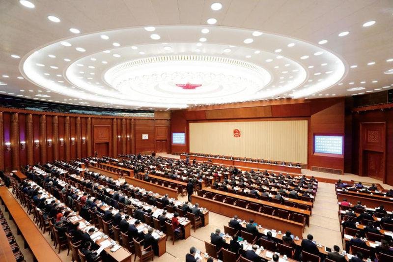 2018年12月24日下午,十三届全国人大常委会第七次会议举行第三次全体会议,听取全国人大常委会法制工作委员会关于2018年备案审查工作情况的报告。中新社记者 杜洋/摄