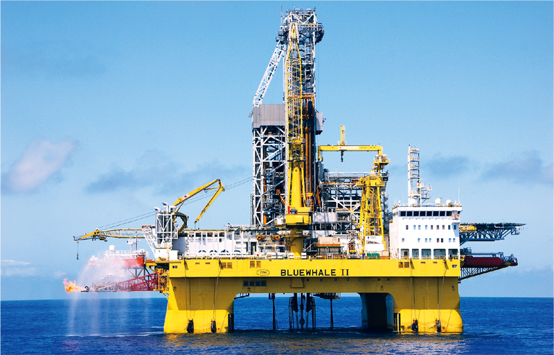 高端装备体现着一国制造业的核心竞争力。在水深1225米的海域,我国一举攻克深海浅软地层水平井钻采核心技术,成为全球首个采用水平井钻采技术试采海域天然气水合物的国家。图为2020年3月1日拍摄的第二轮试采平台“蓝鲸2号”。新华社发(广州海洋地质调查局供图)
