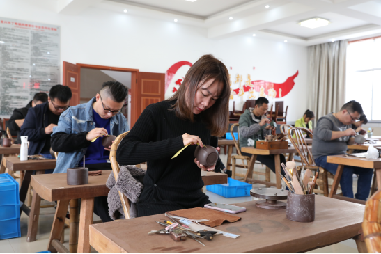 西望村全国首家以农民手工业为基础的紫砂陶瓷专业合作社正在进行“传帮带”培训。 宜兴市委宣传部供图