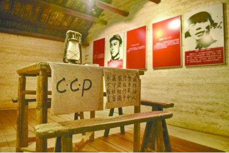 图为毛泽东同志带领赖毅等6名党员举行入党宣誓仪式的叶家祠的阁楼。