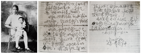 1935年11月,共产党员赵一曼在与日军作战中负伤被俘,面对敌人的酷刑,宁死不屈,从容就义。左图是赵一曼留给儿子的唯一一张合影。右图是赵一曼写给儿子的遗书。她在信中写道:“母亲对于你没有能尽到教育的责任,实在是遗憾的事情。母亲因为坚决地做了反满抗日的斗争,今天已经到了牺牲的前夕了。母亲和你在生前是永久没有再见的机会了。希望你,宁儿呵,赶快成人,来安慰你地下的母亲!我最亲爱的孩子呵!母亲不用千言万语来教育你,就用实行来教育你。在你长大成人之后,希望不要忘记你的母亲是为国而牺牲的!”