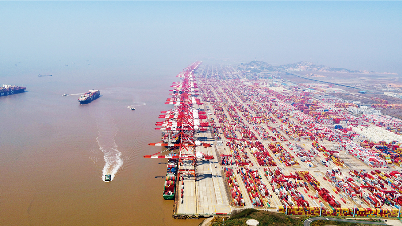 在“绿水青山就是金山银山”理念指引下,长江经济带各地进一步加强环境保护、完善基础设施、推进协调发展、扩大对外开放,共同奏响高质量发展新乐章。图为2020年3月18日上海洋山港集装箱码头。新华社记者 丁汀/摄