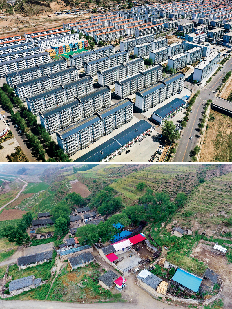 上图为2020年5月20日拍摄的山西省忻州市岢岚县广惠园移民新区;下图为2017年6月22日拍摄的岢岚县赵家洼村,部分赵家洼村村民目前已搬迁居住到了广惠园移民新区。新华社记者 曹阳/摄