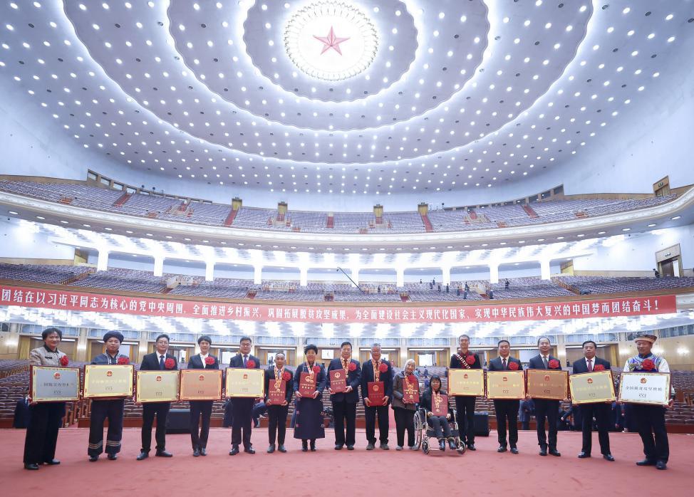 2月25日,全国脱贫攻坚总结表彰大会在北京人民大会堂隆重举行。这是参会的全国脱贫攻坚楷模荣誉称号获得者在会后合影留念。 新华社记者 鞠鹏/摄