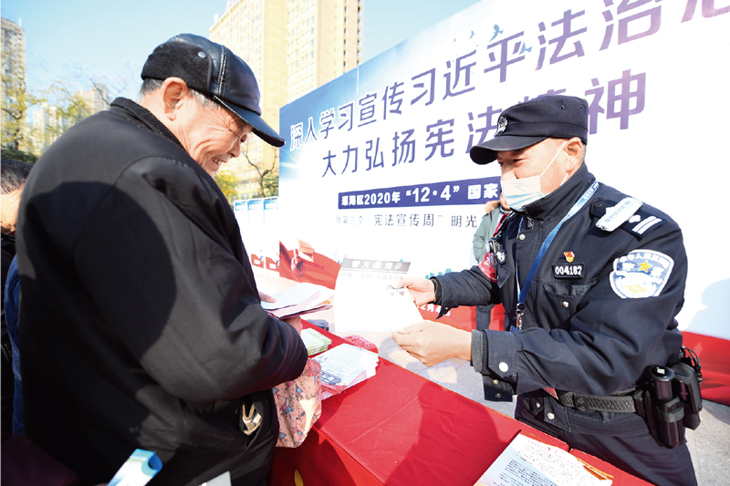 2020年12月4日,在第七个“国家宪法日”,安徽省合肥市开展“深入学习宣传习近平法治思想,大力弘扬宪法精神”主题宣传活动。中新社发 瑶海骏马/摄