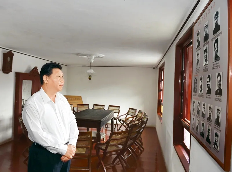 2017年10月31日,中共中央总书记、国家主席、中央军委主席习近平带领中共中央政治局常委李克强、栗战书、汪洋、王沪宁、赵乐际、韩正,瞻仰上海中共一大会址和浙江嘉兴南湖红船。这是31日上午,习近平等在上海中共一大会址纪念馆参观。 新华社记者 李涛/摄