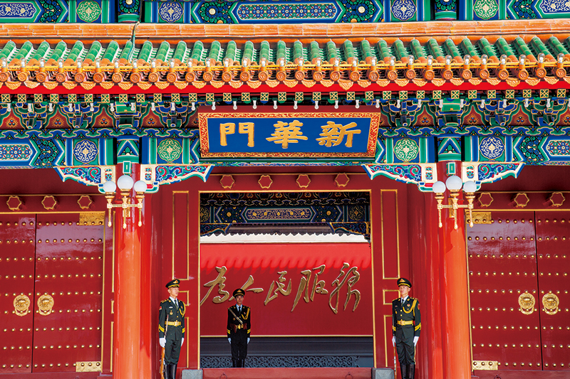 人民是党执政的根基,民心是最大的政治。从1944年毛泽东提出“为人民服务”,到党的十八大后习近平总书记提出以人民为中心的发展思想,中国共产党人始终把人民放在心中最高的位置,始终全心全意为人民服务,始终为人民利益和幸福而奋斗。图为中南海新华门影壁上的“为人民服务”金色大字。 刘新武/摄