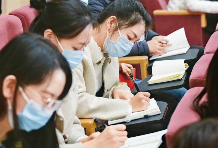 2020年11月7日,中央宣传部、中央和国家机关工委、教育部、中央军委政治工作部、中共北京市委在北京举办学习贯彻党的十九届五中全会精神中央宣讲团首场报告会。在京党政军机关干部、中央企业负责人、高校师生代表和各界群众,共700余人参加报告会。新华社记者 李贺/摄