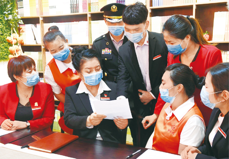 圆方集团是河南省郑州市一家综合服务型民营企业,现有员工6万人,其中党员500多名。2020年,党的十九大代表、圆方集团党委书记薛荣给习近平总书记写信,代表全体职工汇报了坚守本职岗位、积极参与抗疫的情况,表达了共担责任、共克时艰的决心。图为集团员工在学习习近平总书记2020年4月30日的回信。全国党建研究会供图 周甬/摄