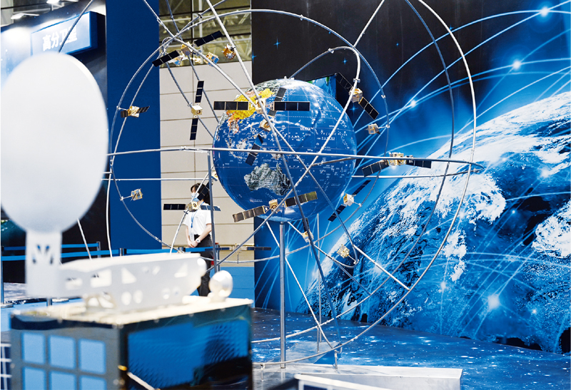 2020年9月18日,“航天放飞中国梦”航天科普展暨中国航天成就展在福州举行,图为展出的北斗卫星导航系统模型。 新华社记者 林善传/摄