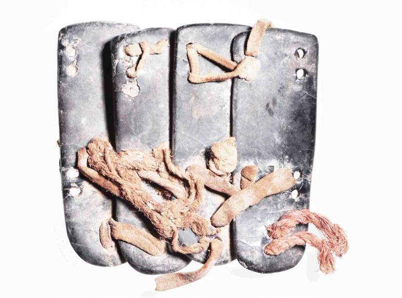 克亚克库都克烽燧遗址出土的牛皮铠甲残片。(图片来源:中国历史研究院)