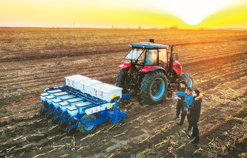 图为2021年3月9日,中国科学院计算技术研究所智能农机团队在吉林省四平市梨树县为四平东风农机公司免耕播种机提供智能化升级技术支持,指导开展春耕备耕。 中国科学院供图
