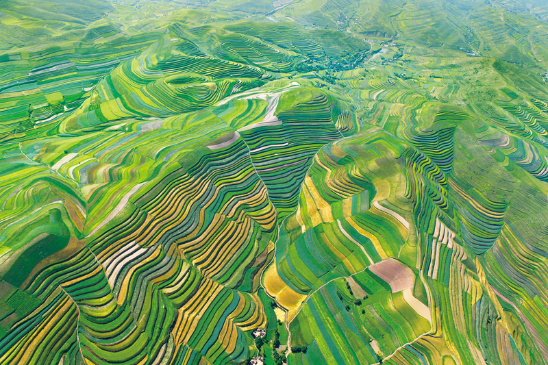 闽宁扶贫协作给“穷沟沟”带来山乡巨变,实现“苦瘠甲天下”到“绿水青山”的蝶变。图为宁夏西海固地区西吉县震湖乡小流域治理生态修复区。强继周/摄