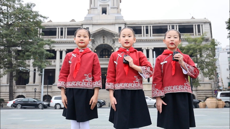 近期,各地共青团、少先队组织广泛开展“学党史、强信念、跟党走”学习教育,通过支部学习、主题团日、实地宣讲等多种形式组织引导广大青少年参与党史学习。图为广州市荔湾区沙面小学的红色宣讲团成员廖宇熙、曹一涵、陈宝儿在粤海关旧址为现场游客宣讲党史故事。共青团中央宣传部供图