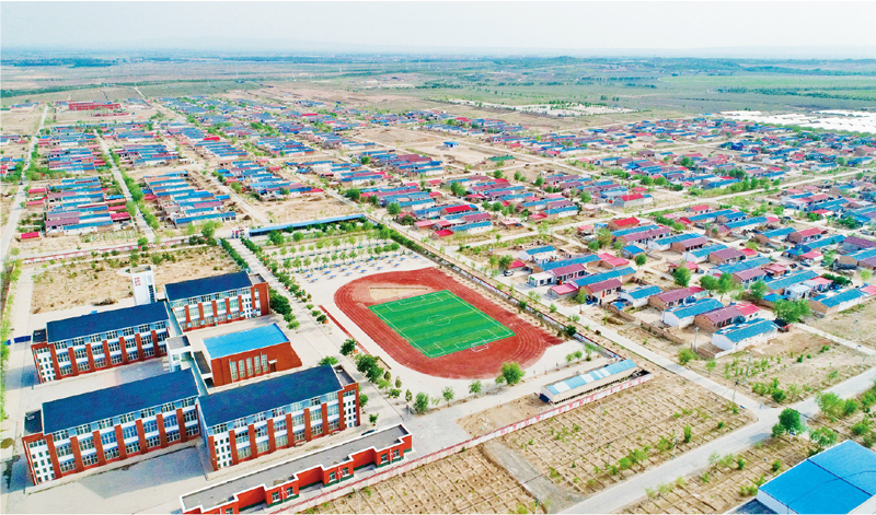 “吊庄移民”工程“移”出脱贫康庄道。图为2020年6月8日拍摄的宁夏回族自治区吴忠市红寺堡区弘德村新貌。移民新居鳞次栉比,一条条水泥硬化路四面延伸,学校、幼儿园、医院一应俱全。宁夏回族自治区党委宣传部供图 马楠/摄