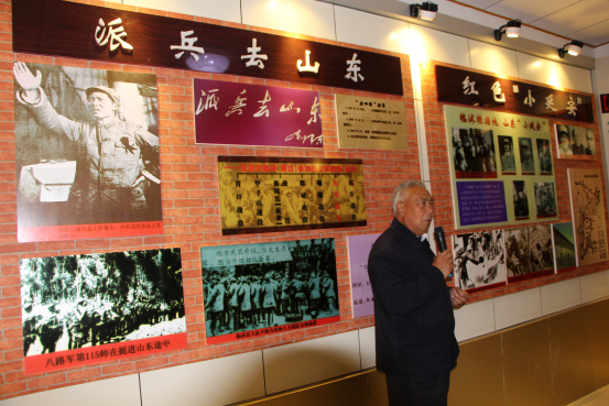 图为朱村村民王经臣在朱村抗日战斗纪念馆作义务讲解。 记者张少义 摄