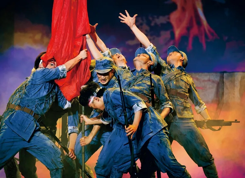 2021年3月18日,大型原创舞剧《我的刘老庄》在江苏省淮安市首演。该剧通过“血脉”、“坚守”、“决战”和“家园”四幕场景展现了新四军“刘老庄连”浴血奋战的伟大壮举和烈属后代在这片红色土地上建设美好家园的动人故事。图为舞台剧照。 人民视觉 贺敬华/摄