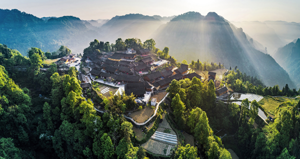 湖南省花垣县十八洞村翻天覆地的历史巨变是习近平新时代中国特色社会主义思想强大真理力量和实践伟力的生动写照。图为2020年5月3日的十八洞村,群山环绕、风景如画。湖南省委宣传部供图 龙耀湘/摄