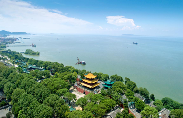 图为阳光下的洞庭湖,蓝天碧海,风光无限。湖南省委宣传部供图 徐典波/摄