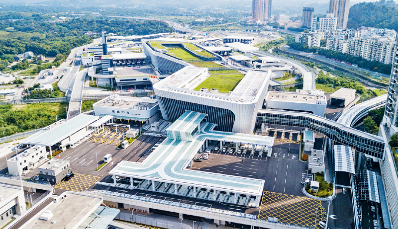 基础设施是经济社会发展的坚实支撑,对于促进人员便捷往来、物流降本增效、产业优化布局等具有重要作用。2020年8月26日,随着货检通道闸口打开,深港间第七座陆路口岸——莲塘/香园围口岸正式开通,粤港澳大湾区再添一条新物流大通道。图为莲塘/香园围口岸。新华社记者 毛思倩/摄
