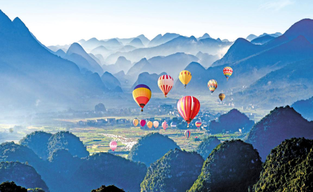 贵州着力把旅游业打造为展现贵州生态环境优势的产业、带动群众增收的富民产业。图为首届国际山地旅游大会在贵州兴义举行。