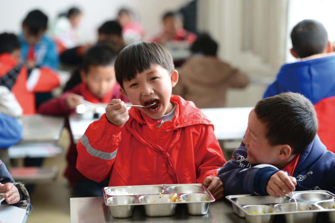 贵州全面免除中职学生学费,成为西部地区率先实现县域义务教育基本均衡发展的省份之一,孩子们告别了跋山涉水上学的历史,实现了住学校、吃食堂,数百万贫困家庭的孩子享受到更公平的教育机会。图为龙里县第七小学的孩子们享用免费“营养午餐”。