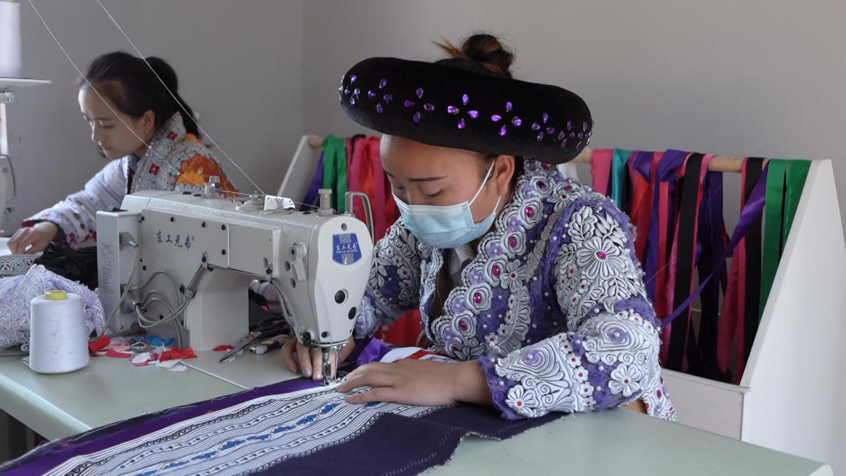 化屋村苗绣商店内,一件件精美的手工苗绣服装、特色小饰品琳琅满目;扶贫车间里工人飞针走线,忙着赶制订单。