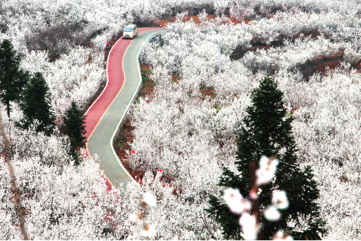顺着杨才貌指的方向望去,薄雾萦绕的樱桃林下,在蜿蜒的总溪河旁,一栋栋崭新的房子矗立,宽阔而整洁的柏油路延伸至家家户户,路旁还有自行车道、步道和干净明亮的公共洗手间,犹如一幅秀丽的山水画。
