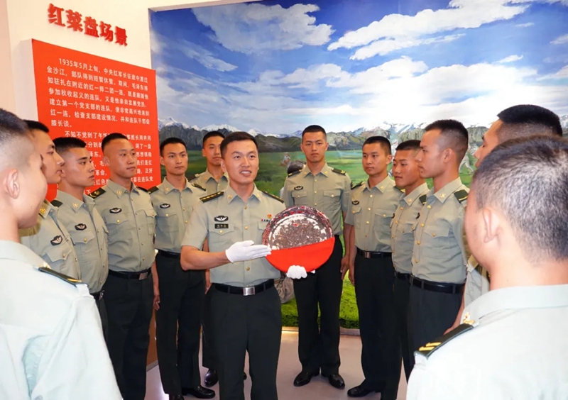 “红一连”连史馆里,珍藏着一件“镇馆之宝”——毛泽东同志与连队官兵一起就餐使用的红菜盘。斑驳的红菜盘,见证了连队的红色历史,镌刻着连队的红色记忆。