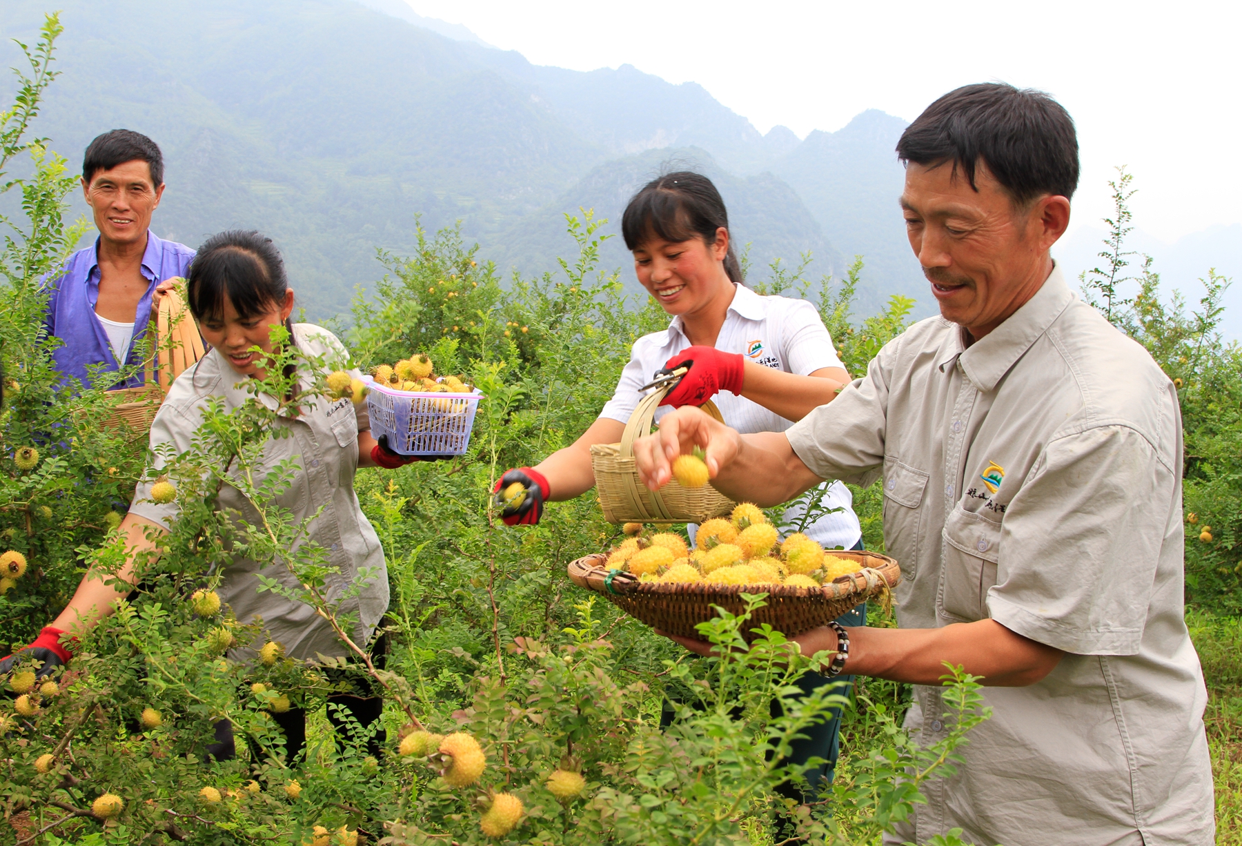 一大早,贵州省六盘水市水城区野钟乡发射村村民邓集文一家就开始忙着采摘自家种植的刺梨果。邓集文家种有7亩多刺梨,其中有5亩多的刺梨挂果。一天下来,一家人采摘了2000多斤。