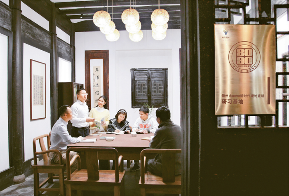 2021年4月,浙江省衢州市8090新时代理论宣讲团骨干成员在8090新时代理论宣讲研习基地,讨论修改庆祝建党百年宣讲稿件。 浙江省委组织部供图 胡云珍/摄
