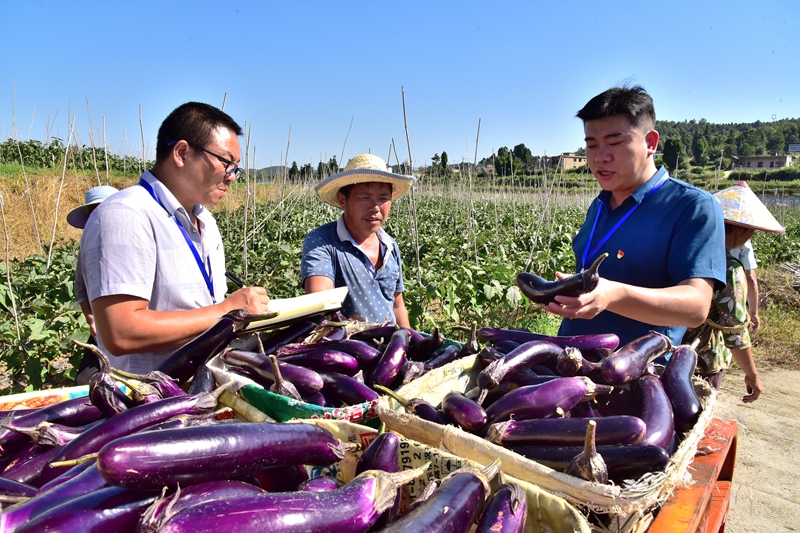 贵州省毕节市金沙县纪委监委聚焦巩固拓展脱贫攻坚成果与乡村振兴有效衔接,充分整合县乡村三级监督力量,深入村寨扎实开展“过渡期”专项监督,严肃查处群众身边的腐败问题和不正之风,为深入推进乡村振兴提供纪律保障。图为2021年7月26日,该县纪检监察干部到商品蔬菜基地就产业发展情况进行监督检查。贵州省纪委监委供图 潘磊/摄