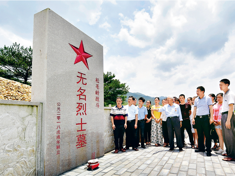 2019年6月16日,在福建省长汀县南山镇长窠头村,年逾九旬的钟宜龙老人在松毛岭战斗无名烈士墓前介绍松毛岭战役的历史。松毛岭战役是红军长征出发前的重要战役,无数红军将士长眠于此。这位老党员为松毛岭战役牺牲的无名烈士“守魂”60余载,被称为长征起点“守魂人”。钟宜龙说:“我的人生两个字:一个是红字,一个是心字。” 新华社记者 魏培全/摄
