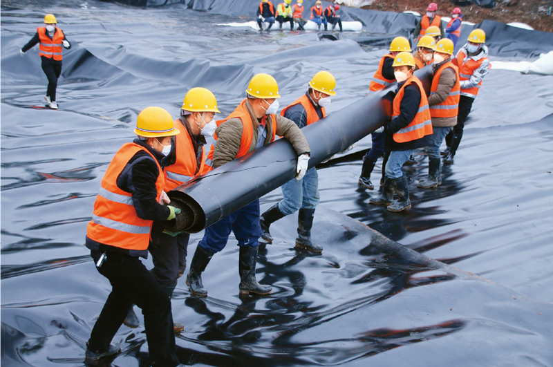 火神山雷神山医院建设过程中,4万名建设者们舍小家顾大家、舍小我取大义,千里“逆行”而来,倾力抢建、无私奉献,用团结奋战筑牢项目建设的钢铁长城,生动诠释了同舟共济、众志成城的精神伟力。图为2020年1月26日,中建集团火神山医院建设者正在齐心协力铺设HDPE防渗膜,确保雨污水零渗漏、零扩散。中建集团供图