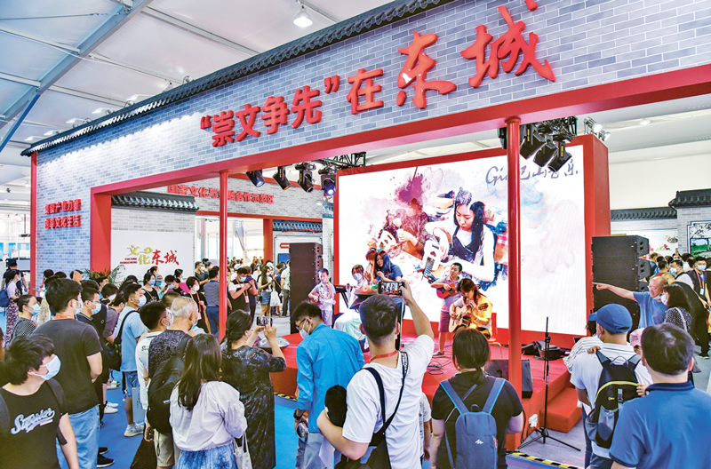 图为中国国际服务贸易交易会文化服务专题展东城展区。“崇文争先”是东城的参展主题,诠释了东城区发挥文化优势,以“争先”的态度,努力建设“国际一流的和谐宜居之都”首善之区。北京市东城区委宣传部供图 张传东/摄