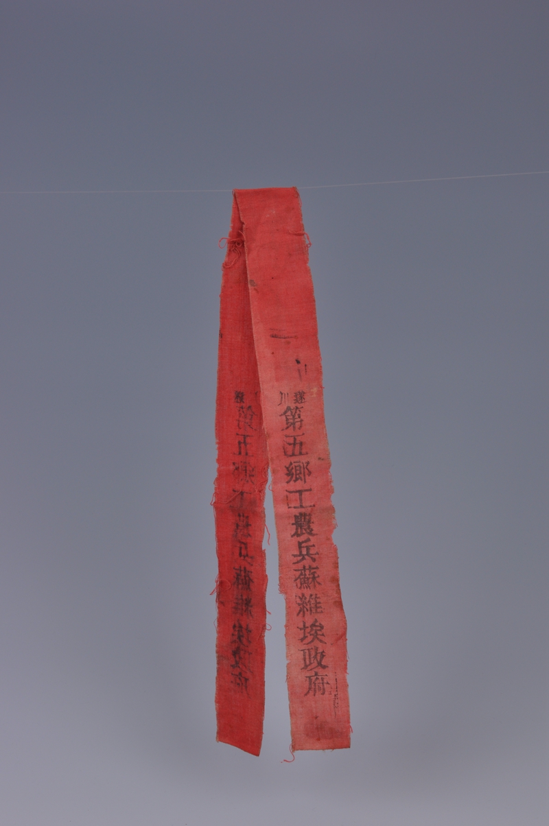 博物馆里,有一条红带子不断吸引着参观者驻足观看。这条红带子,长70厘米,宽4厘米,两端印有“遂川第五乡工农兵苏维埃政府”字样。这是遂川县赤卫队队长王棣权用过的一条识别带。1928年,王棣权在一次战斗中壮烈牺牲,他的妻子怀着巨大悲痛把丈夫生前系过的这根红带子藏在了房屋的墙洞里,默默守护了几十年。