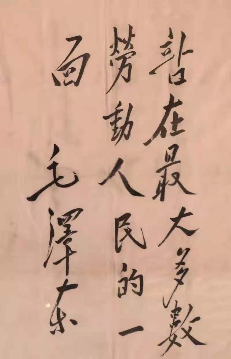 图为毛泽东同志1947年10月给中共佳县县委的题词:“站在最大多数劳动人民的一面”(复制件)。延安革命纪念馆供图