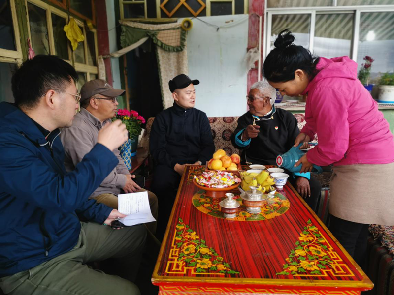 “我们向着小康走”中国作家采访团在西藏江孜镇东郊村采访。中国作家协会供图