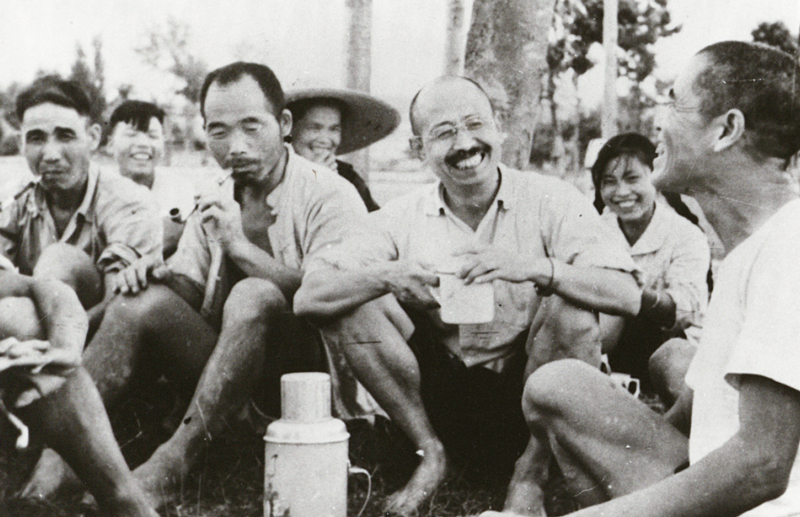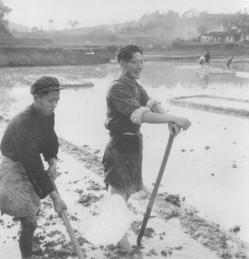 1958年,作家周立波在湖南农村田间劳作(资料照片)。中国作家协会供图