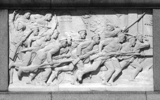 1911年10月10日,湖北新军工程第八营士兵在武昌打响了“辛亥革命第一枪”,拉开了中国完全意义上的近代民族民主革命的序幕,开启了中国人民和中华民族为实现民族独立、人民解放和国家富强、人民幸福而奋斗的壮阔历程。图为人民英雄纪念碑南侧浮雕(东)《武昌起义》。 新华社记者 李欣/摄