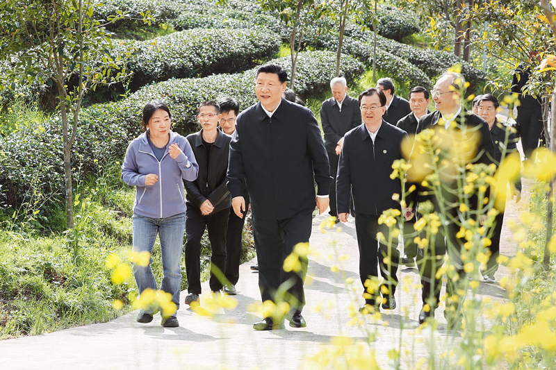 2021年3月22日至25日,中共中央总书记、国家主席、中央军委主席习近平在福建考察。这是22日下午,习近平在南平武夷山市星村镇燕子窠生态茶园,察看春茶长势,了解当地茶产业发展情况。 新华社记者 鞠鹏/摄