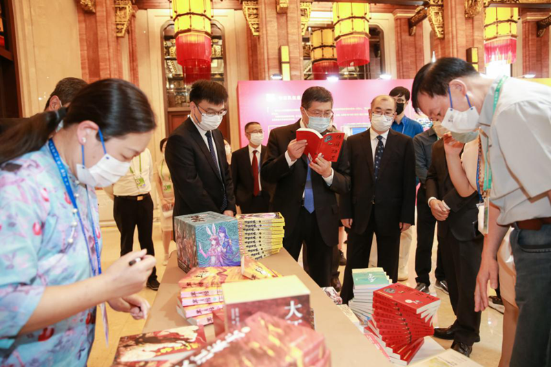 2021中国国际网络文学周与会嘉宾参观“中国网络文学发展成就展”。中国作家协会供图