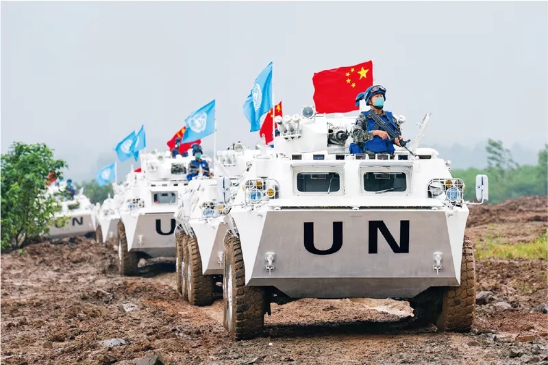自1990年以来,中国已向近30项联合国维和行动派出维和人员5万余人次。目前有2200余人在联合国8个任务区执行任务,在五个常任理事国中名列第一。已组建8000人规模维和待命部队和300人规模常备维和警队,成为联合国维和待命部队中数量最多、分队种类最齐全的国家。图为2021年9月6日上午,“共同命运—2021”国际维和实兵演习在中国举行。中国、蒙古国、巴基斯坦、泰国等国的军队参加演习。 中新社发 万全/摄